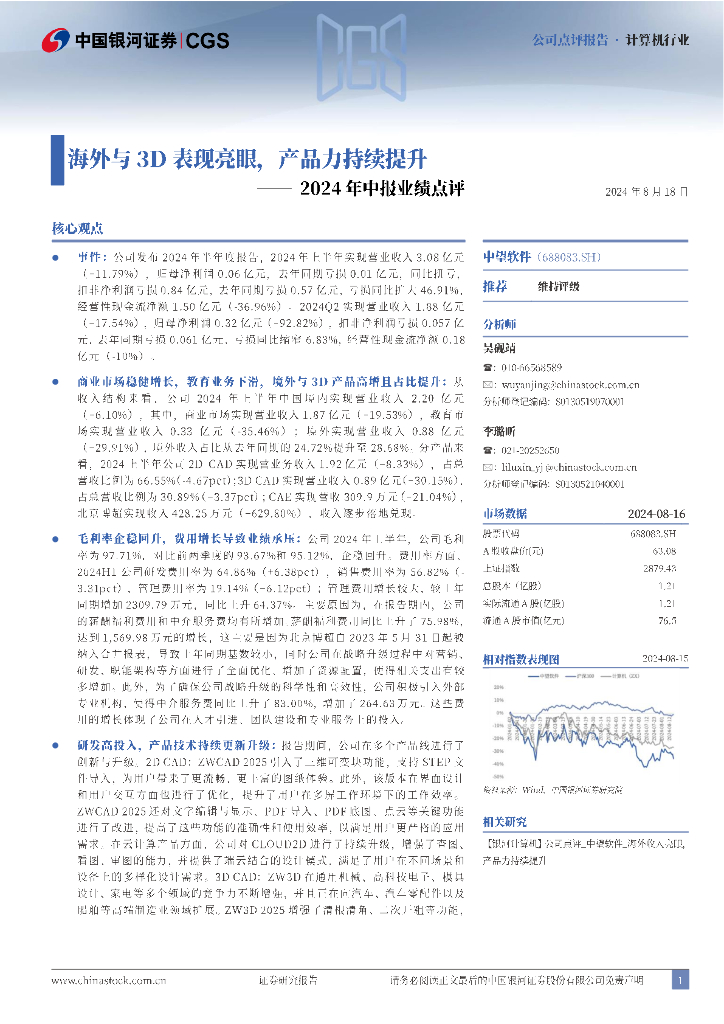 中国银河:中望软件(688083)-2024年中报业绩点评:海外与3D表现亮眼,产品力持续提升.pdf