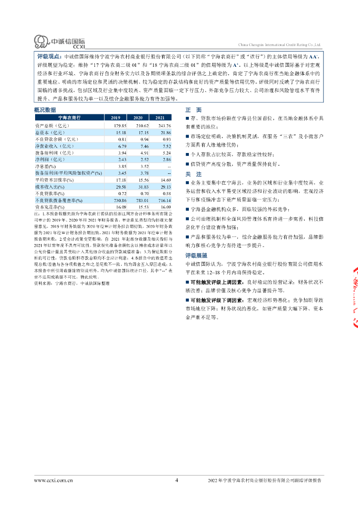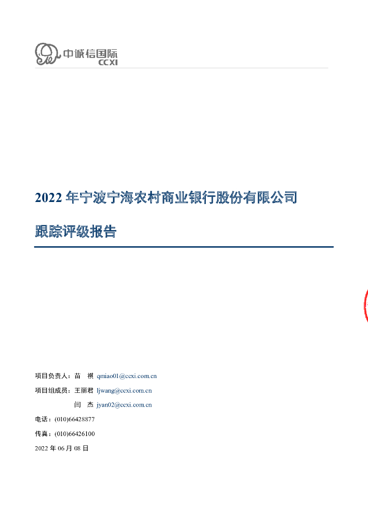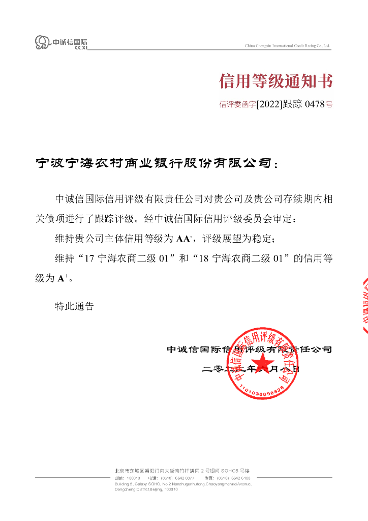 中诚信:2022年宁波宁海农村商业银行股份有限公司跟踪评级报告.pdf