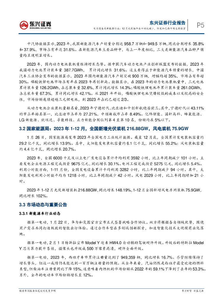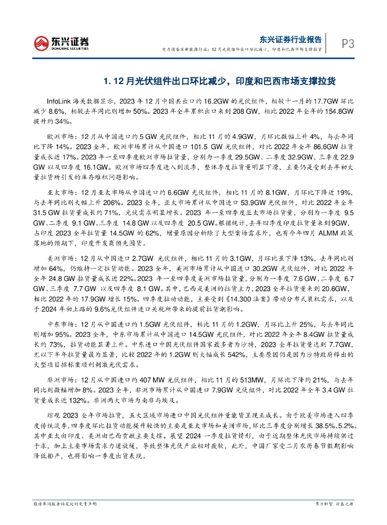 东兴证券:电力设备及新能源行业:12月光伏组件出口环比减少,印度和巴西市场支撑拉货.pdf