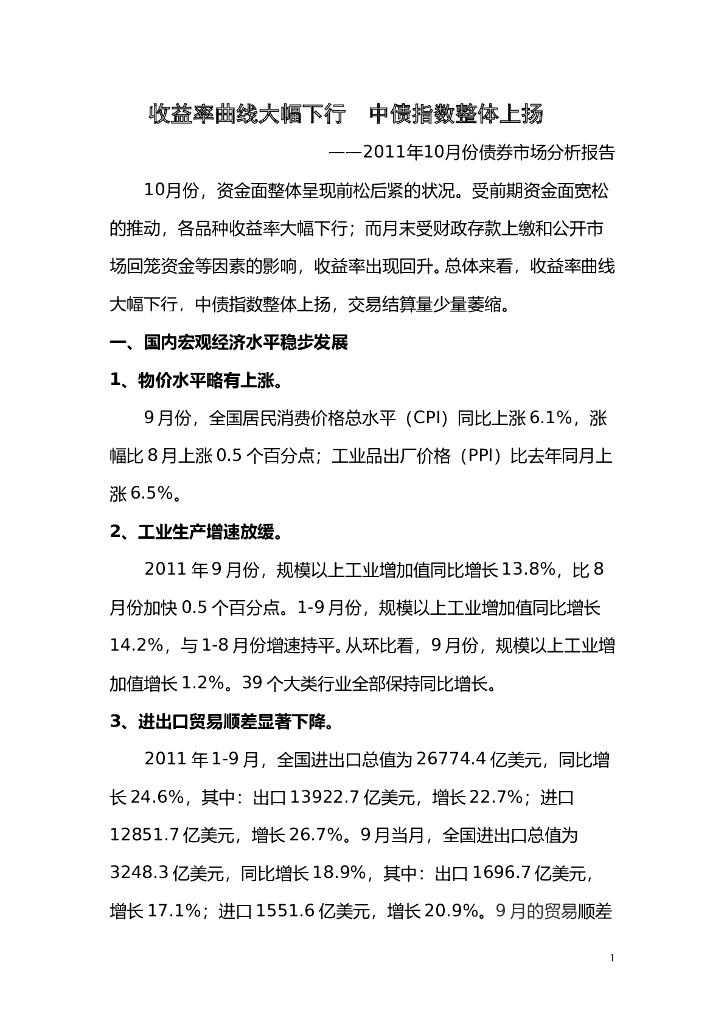 中债研发中心:2011年10月份债券市场分析报告.doc