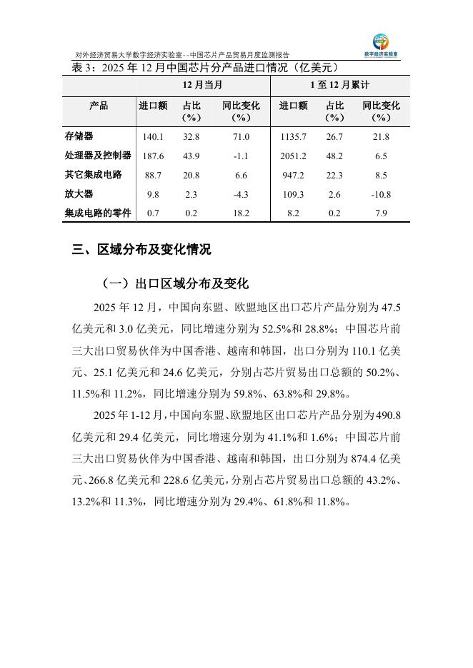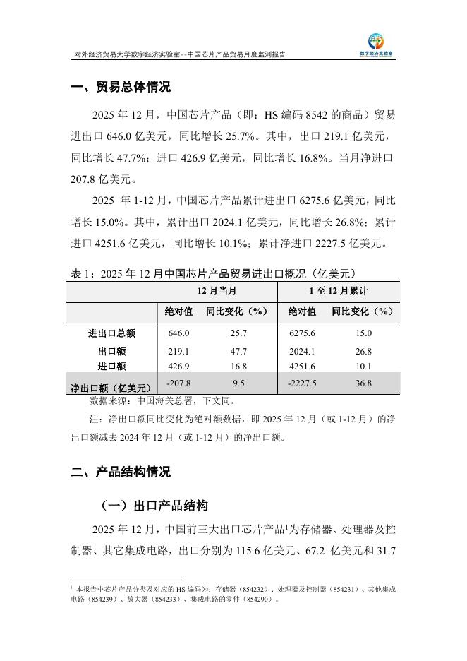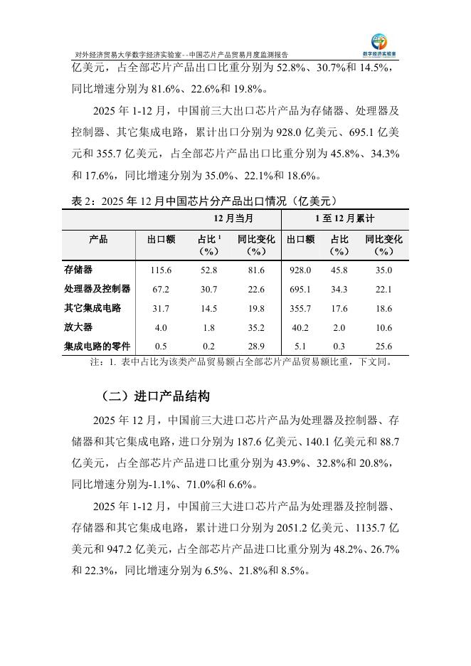 对外经济贸易大学:中国芯片产品贸易月度监测报告(2025年1-12月).pdf