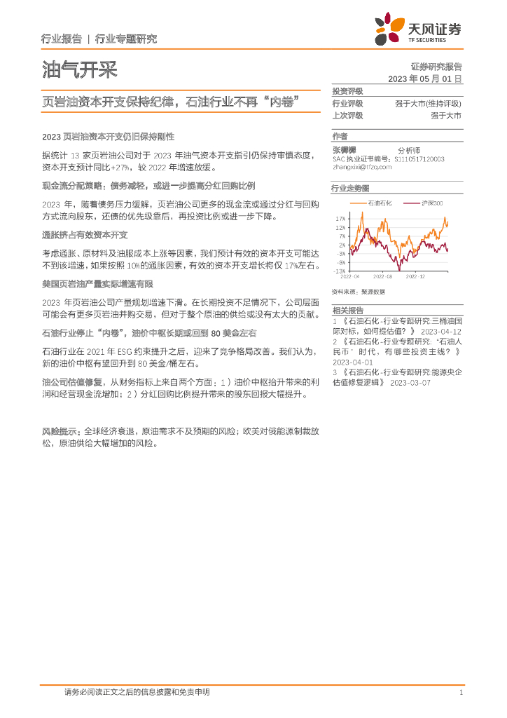 天风证券:油气开采行业专题研究:页岩油资本开支保持纪律,石油行业不再“内卷”.pdf