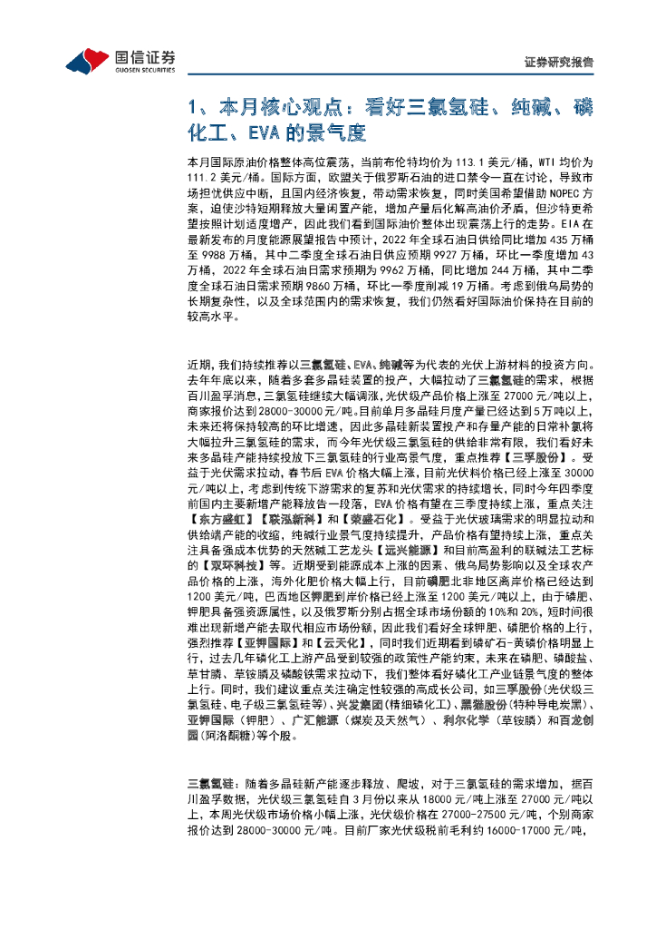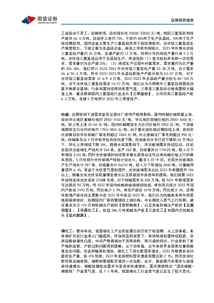 国信证券:化工行业2022年6月投资策略:看好三氯氢硅、纯碱、磷化工、EVA的景气度.pdf