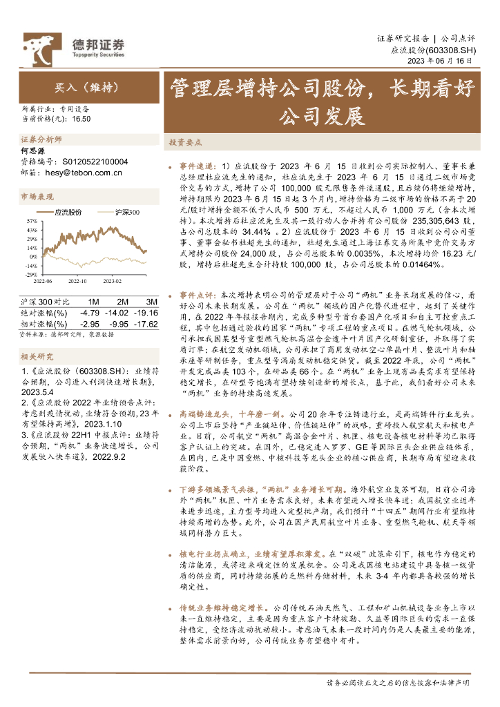 德邦证券:应流股份(603308)-管理层增持公司股份,长期看好公司发展.pdf
