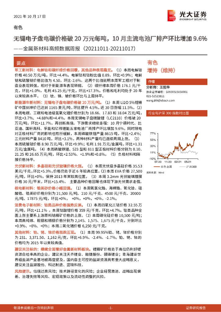 光大证券:金属新材料高频数据周报:无锡电子盘电碳价格破20万元每吨,10月主流电池厂排产环比增加9.6%.pdf