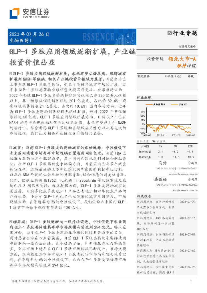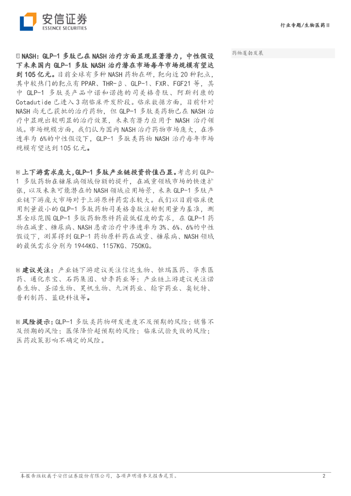 安信证券:生物医药Ⅱ行业专题:GLP-1多肽应用领域逐渐扩展,产业链投资价值凸显.pdf