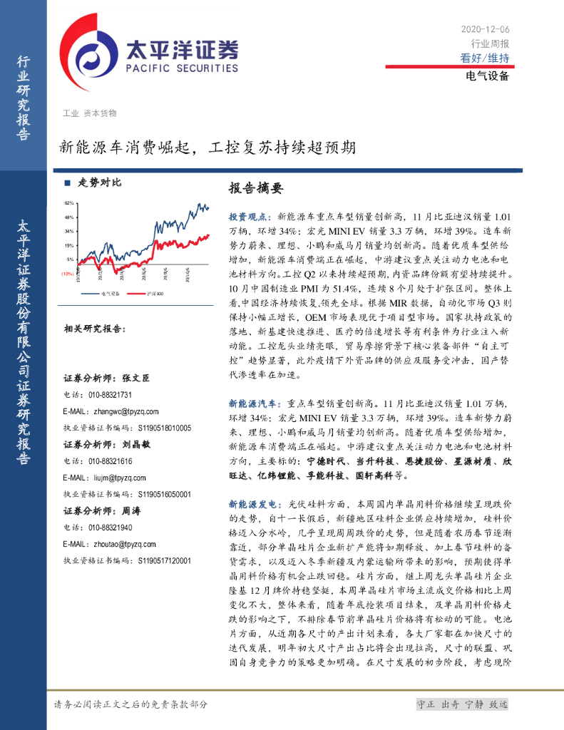 太平洋证券:电气设备行业周报:新能源车消费崛起,工控复苏持续超预期.pdf