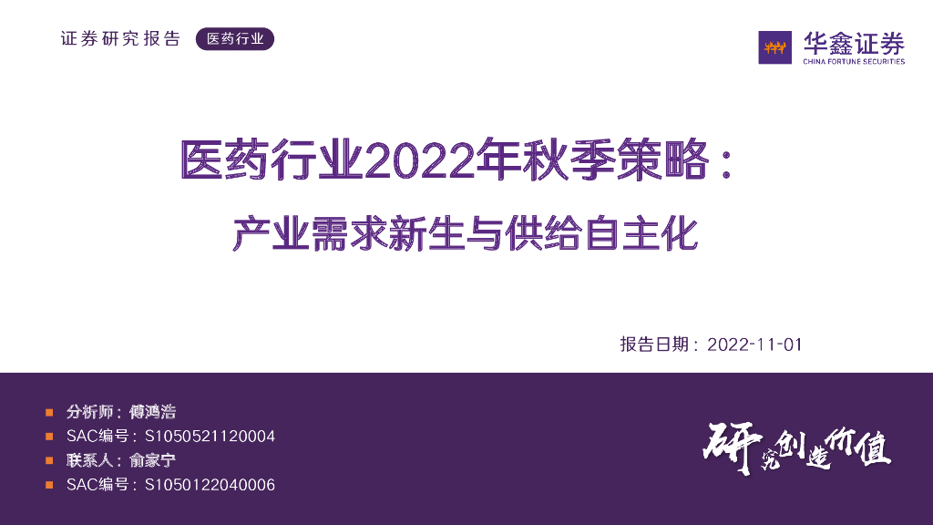华鑫证券:医药行业2022年秋季策略:产业需求新生与供给自主化.pdf