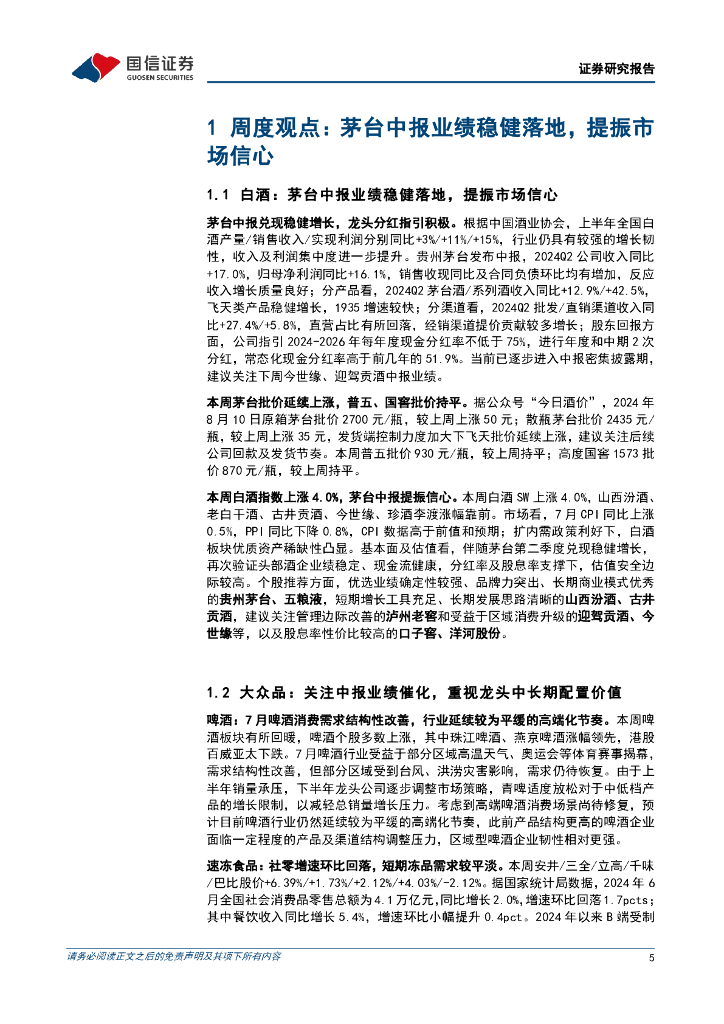 国信证券:食品饮料行业周报(24年第32周):茅台披露中报业绩,提振市场信心.pdf