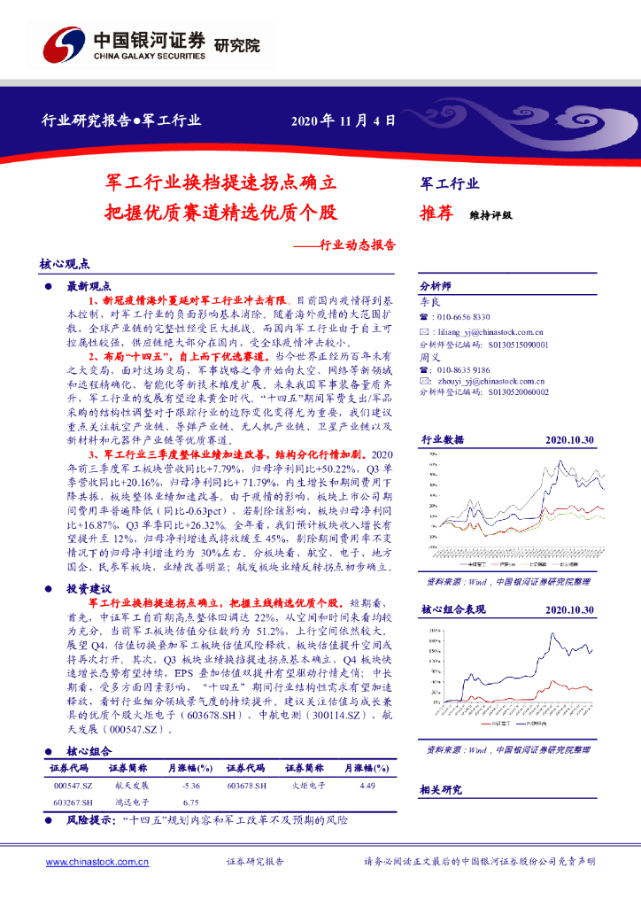 中国银河:军工行业动态报告:军工行业换档提速拐点确立 把握优质赛道精选优质个股.pdf