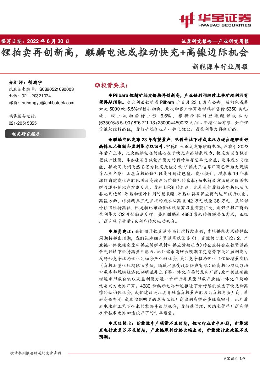 华宝证券:新能源车行业周报:锂拍卖再创新高,麒麟电池或推动快充+高镍边际机会.pdf