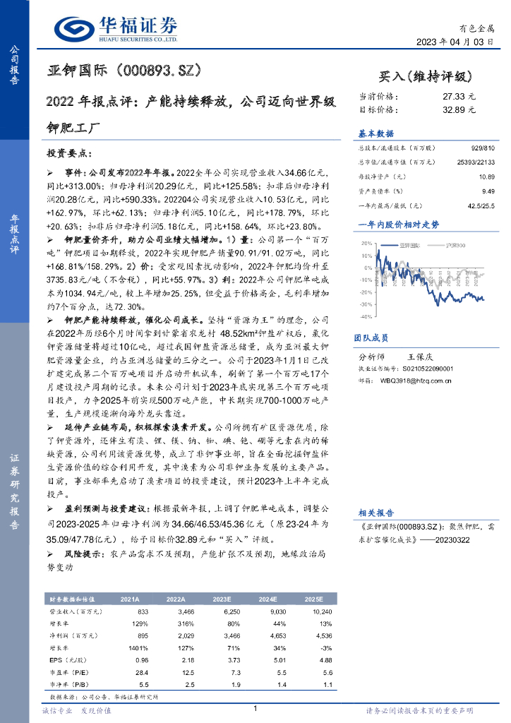 华福证券:亚钾国际(000893)-2022年报点评:产能持续释放,公司迈向世界级钾肥工厂.pdf