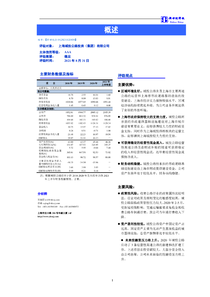 新世纪:上海城投公路投资(集团)有限公司主体信用评级报告及跟踪评级安排.pdf