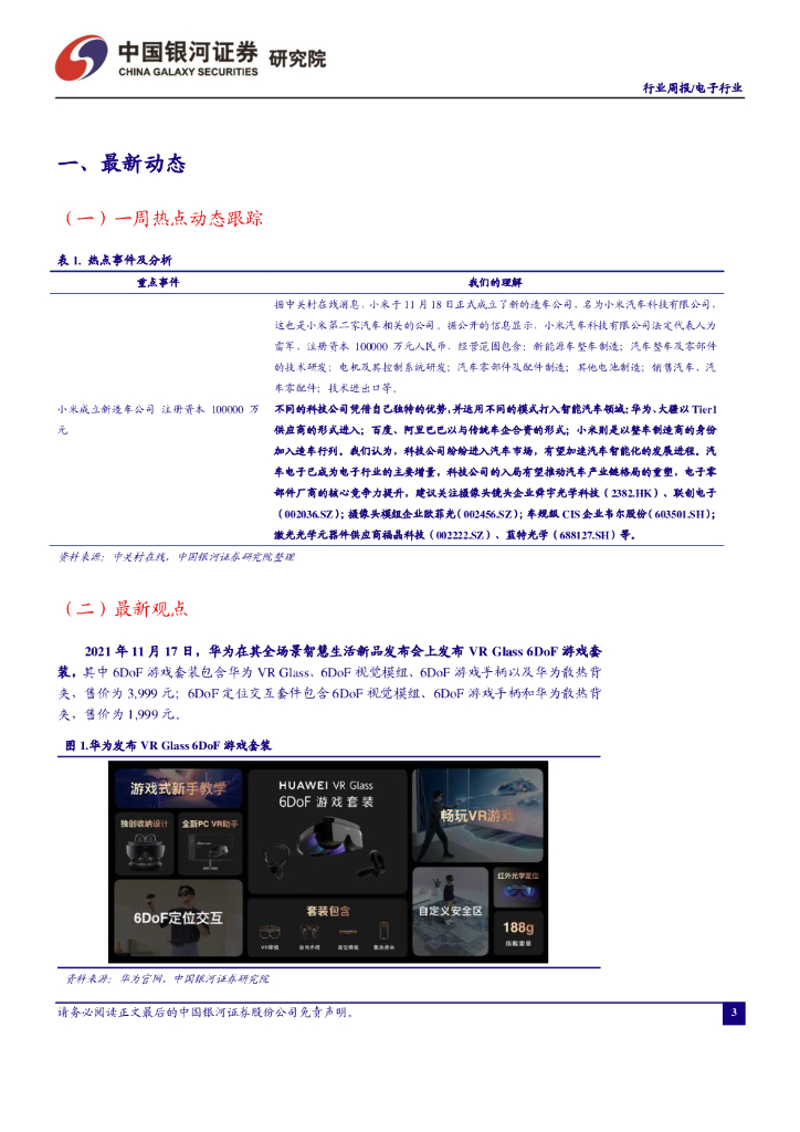 中国银河:电子行业周报:华为发布HUAWEI VR Glass 6DoF,加速VR商用进程.pdf