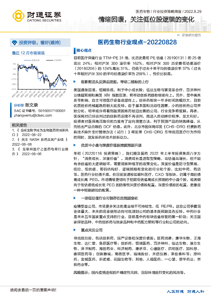 财通证券:医药生物行业观点:情绪回暖,关注低位股逻辑的变化.pdf