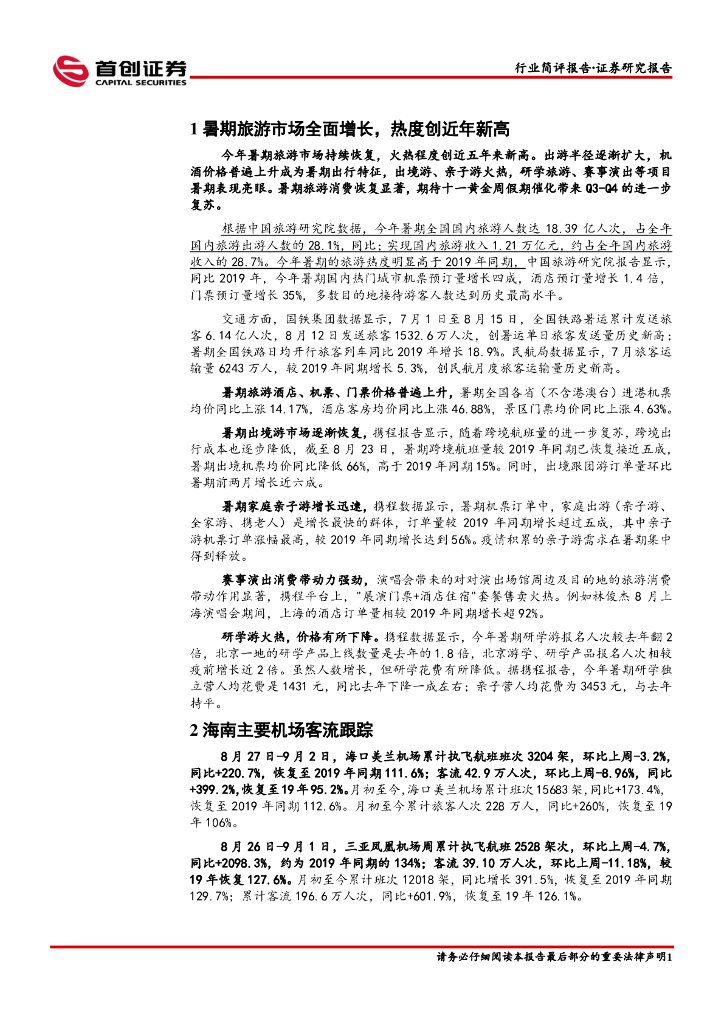 首创证券:社服:暑期旅游市场全面增长,热度创近年新高.pdf