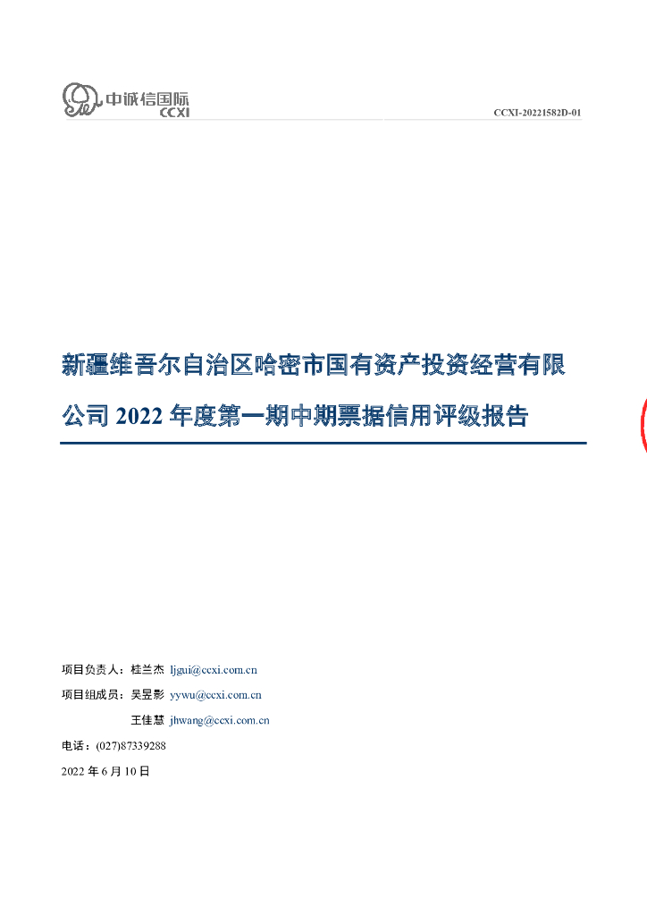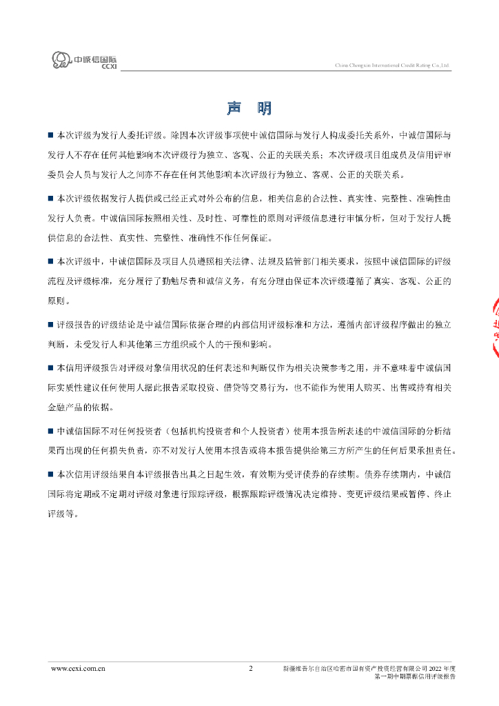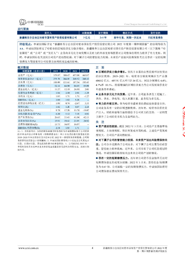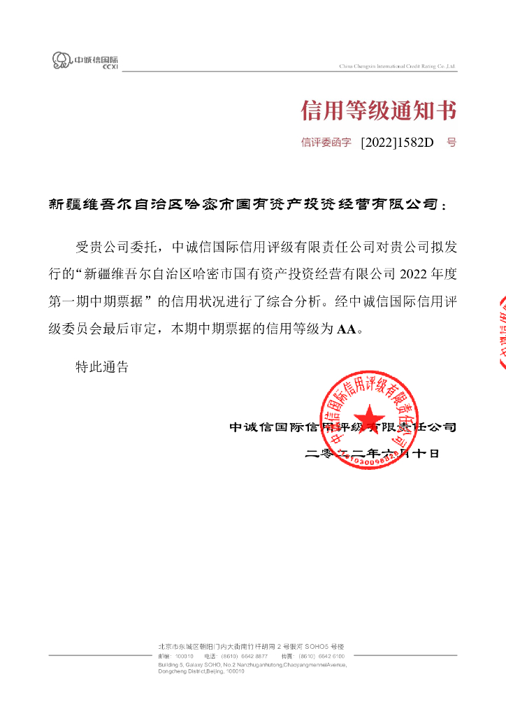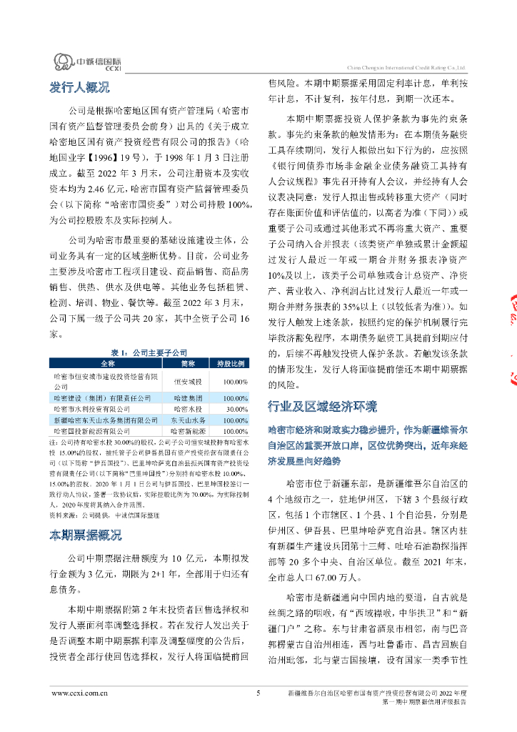 中诚信:新疆维吾尔自治区哈密市国有资产投资经营有限公司2022年度第一期中期票据信用评级报告.pdf
