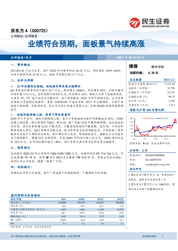 民生证券:京东方A(000725)-业绩符合预期,面板景气持续高涨.pdf