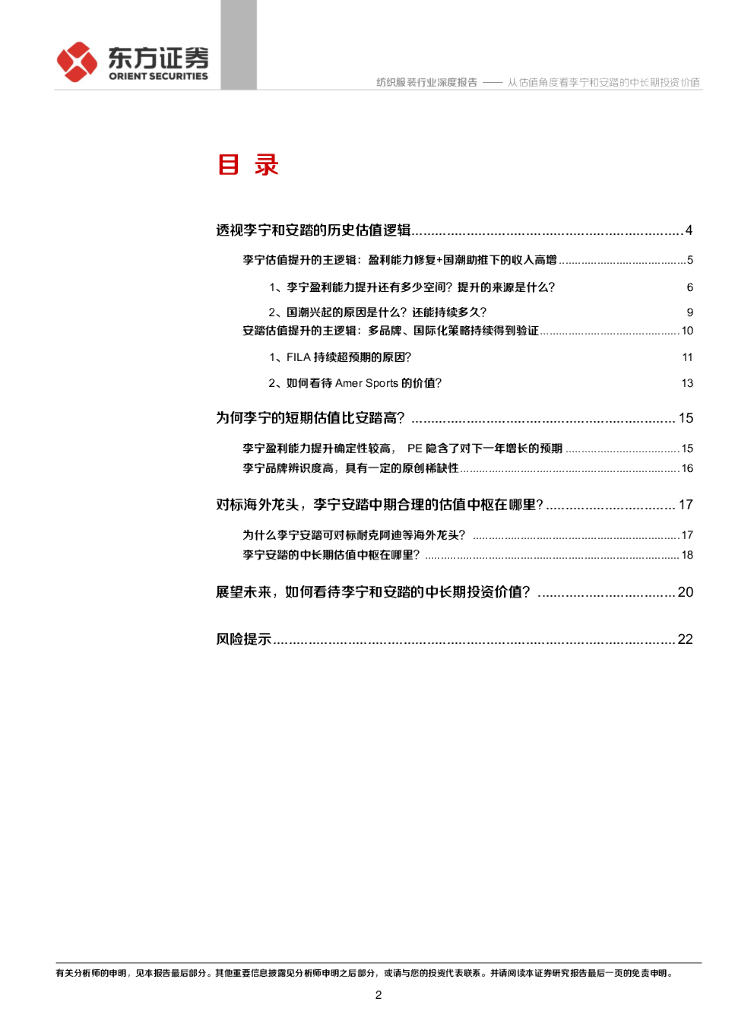 东方证券:纺织服装行业深度报告:从估值角度看李宁和安踏的中长期投资价值.pdf