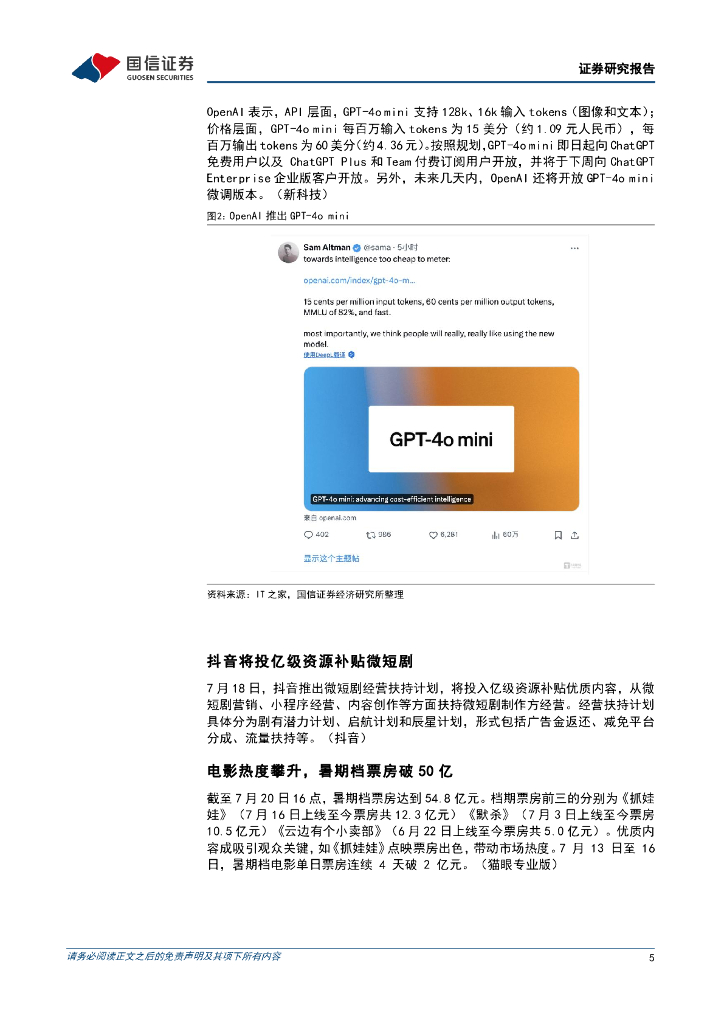 国信证券:传媒互联网周报:GPT-4omini上线,《抓娃娃》等优质内容带动暑期档票房.pdf