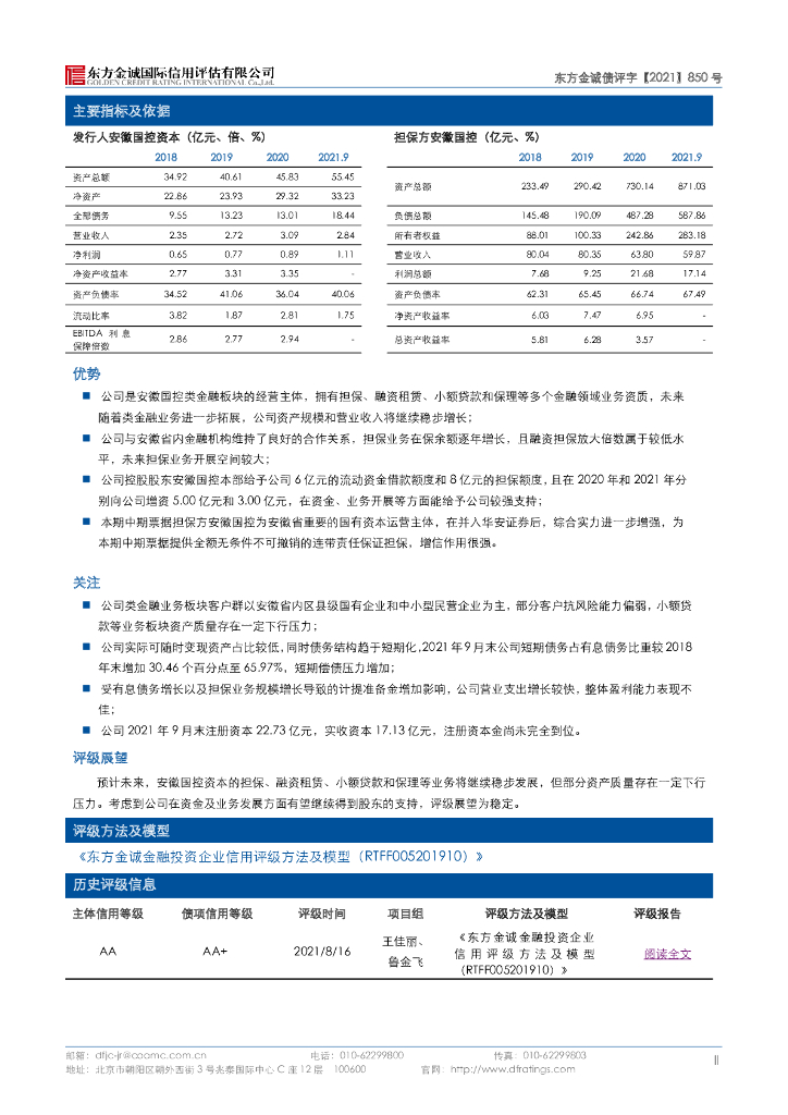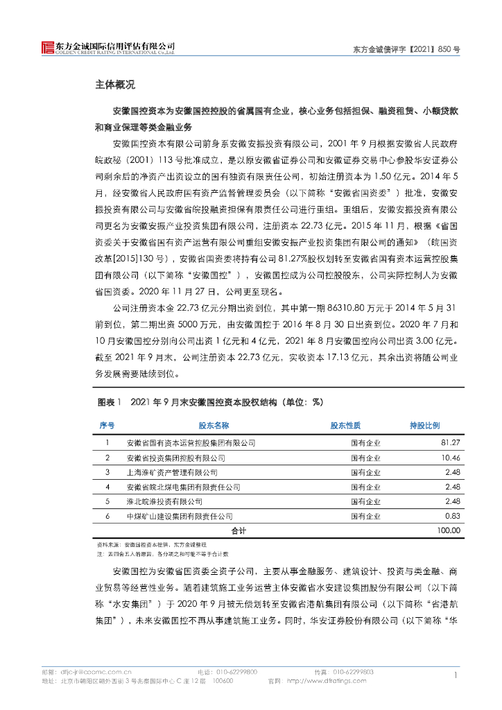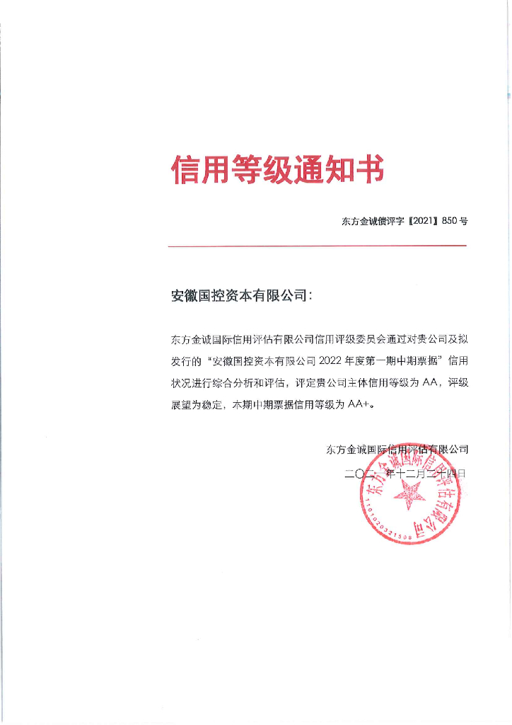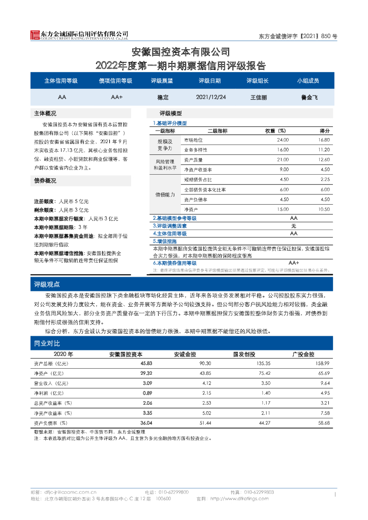 东方金诚:安徽国控资本有限公司2022年度第一期中期票据信用评级报告及跟踪评级安排.pdf