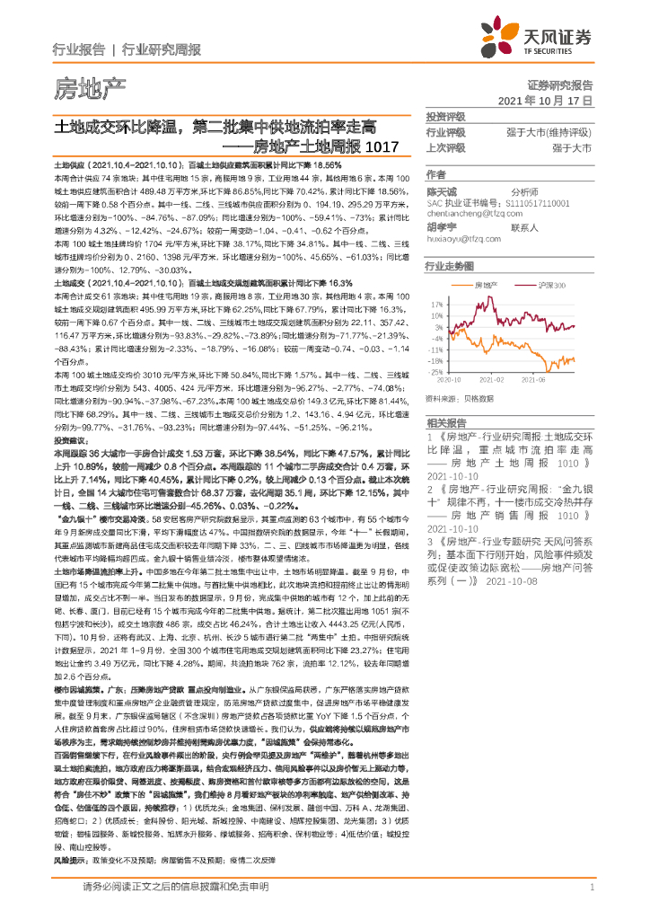 天风证券:房地产土地周报:土地成交环比降温,第二批集中供地流拍率走高.pdf