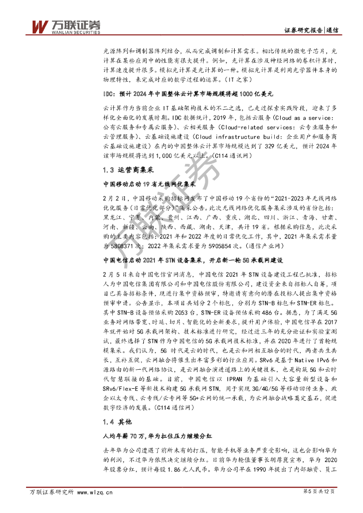 万联证券:通信行业周观点:电信启动STN设备集采,开启新一轮5G建设.pdf