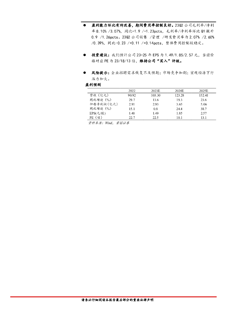 首创证券:科锐国际(300662)-23H1中报业绩点评:Q2业绩环比改善,数字化建设持续赋能.pdf