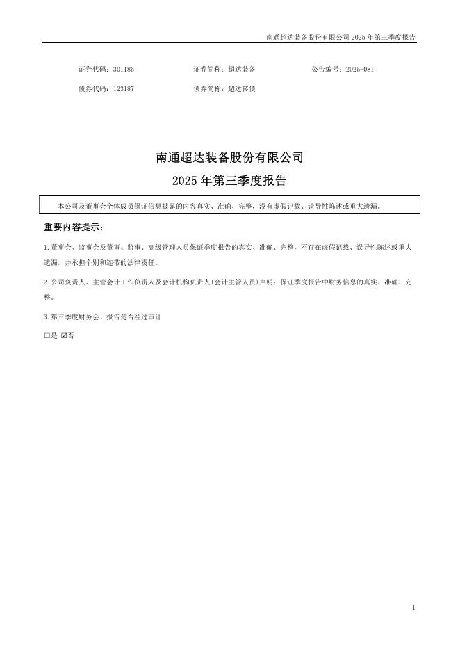 123187-超达装备:2025年三季度报告.pdf