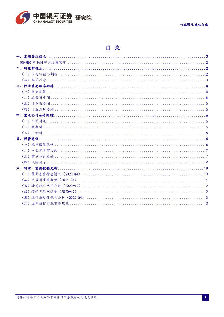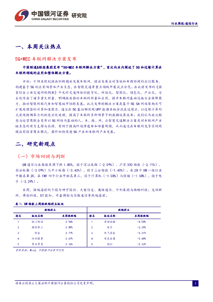 中国银河:通信行业周报:5G+MEC车联网解决方案发布,电信募资半数投入云网融合.pdf