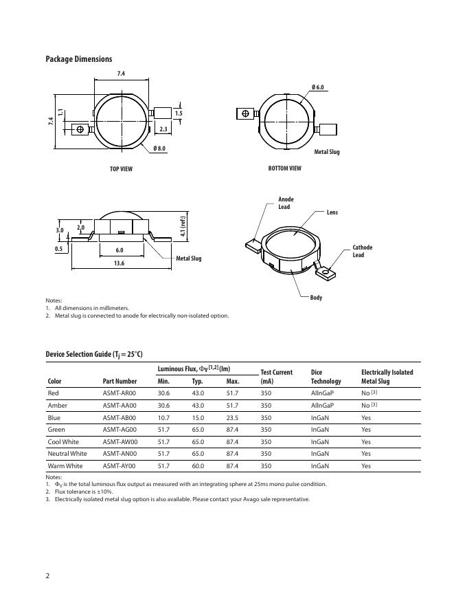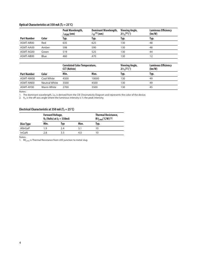 AVAGO TECHNOLOGIES ASMT-Ax00 1W Power LED Light Source 数据手册.pdf