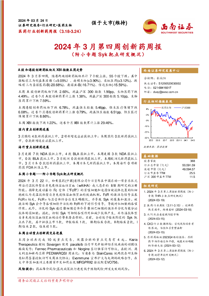 西南证券:医药行业创新药周报:2024年3月第四周创新药周报(附小专题Syk靶点研发概况).pdf