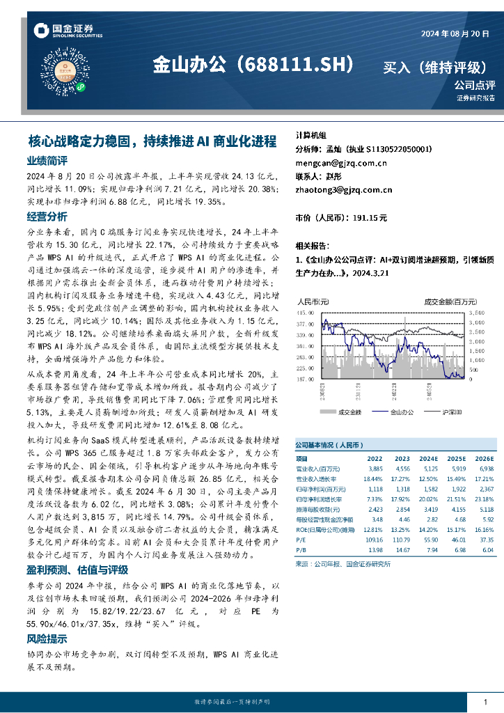 国金证券:金山办公(688111)-核心战略定力稳固,持续推进AI商业化进程.pdf