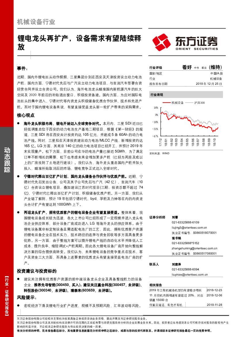 东方证券:机械设备行业动态跟踪:锂电龙头再扩产,设备需求有望陆续释放.pdf