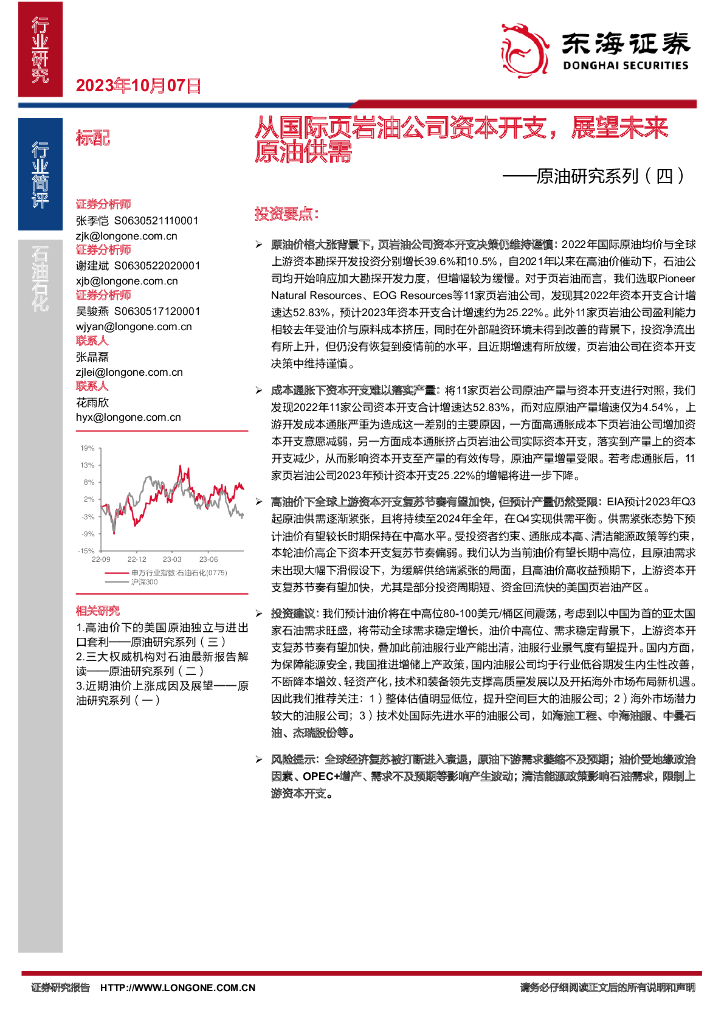 东海证券:原油研究系列(四):从国际页岩油公司资本开支,展望未来原油供需.pdf