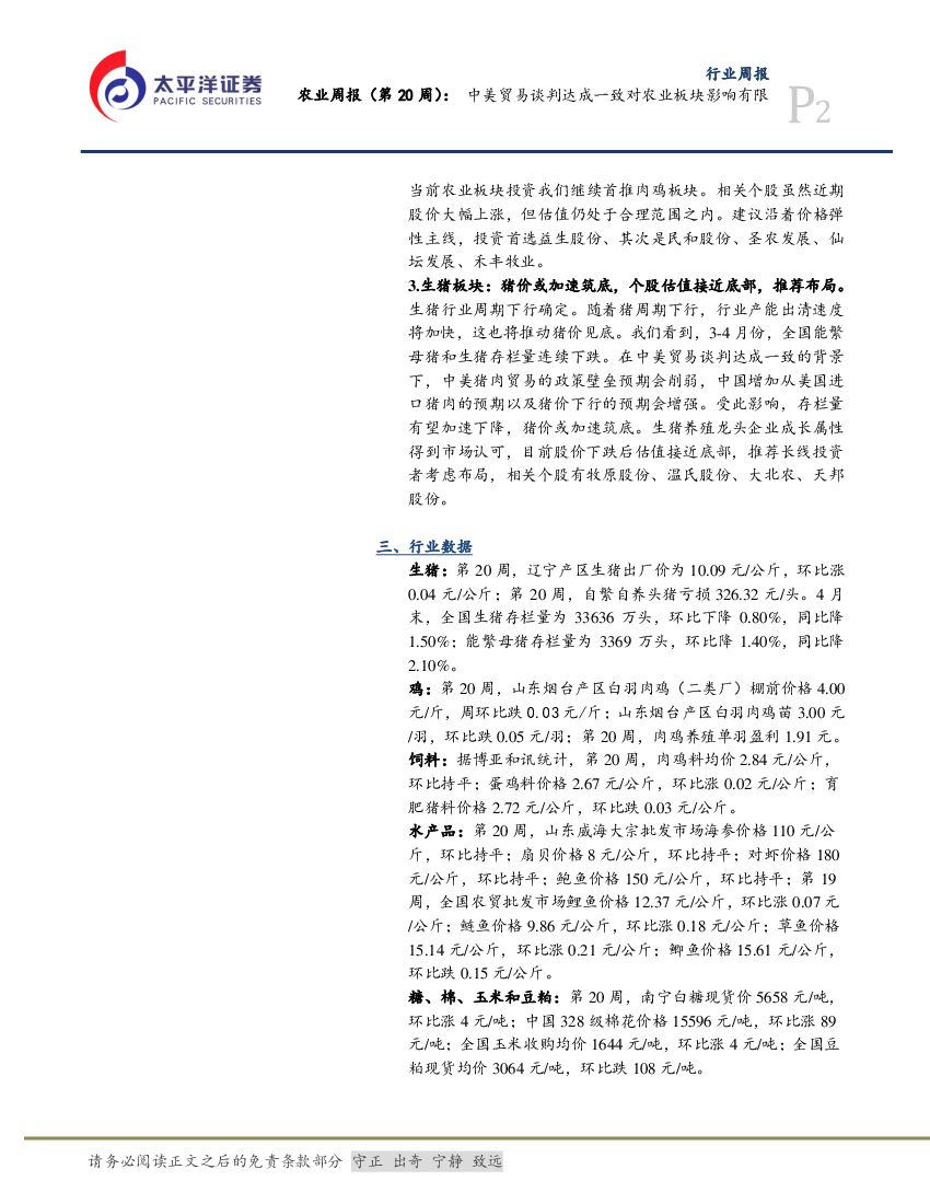 太平洋证券:农业周报(第20周):中美贸易谈判达成一致对农业板块冲击有限.pdf