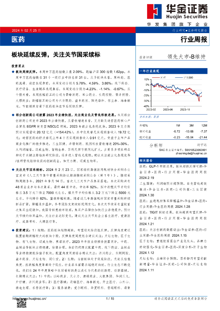 华金证券:行业周报:板块延续反弹,关注关节国采续标.pdf