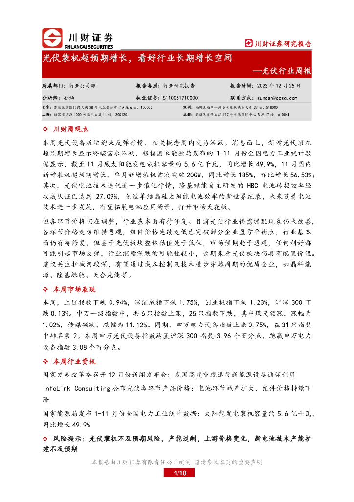 川财证券:光伏行业周报:光伏装机超预期增长,看好行业长期增长空间.pdf