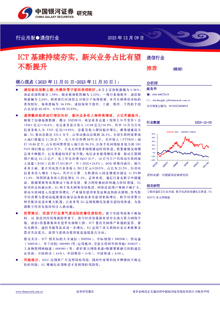 中国银河:通信行业行业月报:ICT基建持续夯实,新兴业务占比有望不断提升.pdf