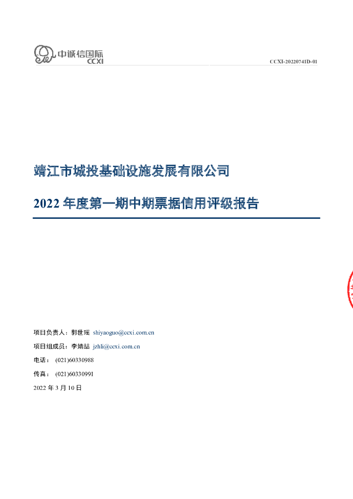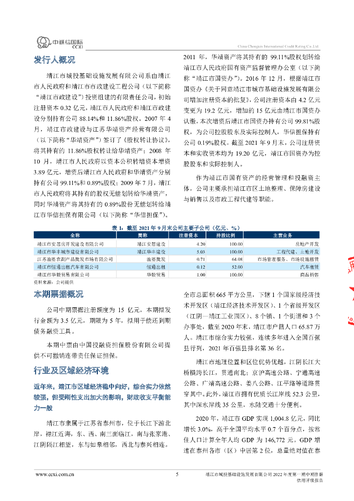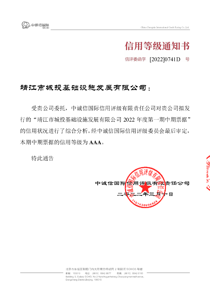 中诚信:靖江市城投基础设施发展有限公司2022年度第一期中期票据信用评级报告.pdf