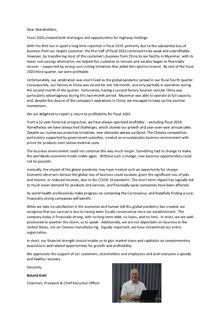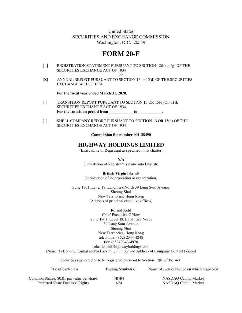 Highway Holdings Limited(HIHO)2020财年年度报告(英文版).pdf