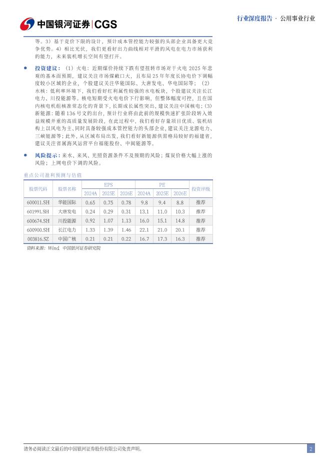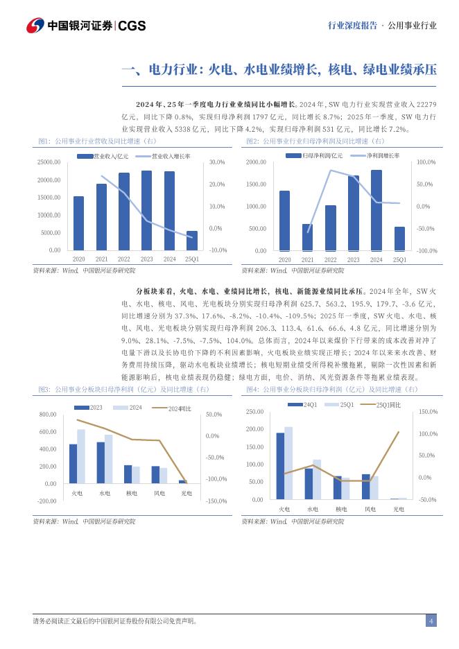 中国银河:电力行业2024年年报和2025年一季报总结:火电、水电业绩增长,核电、绿电业绩承压.pdf