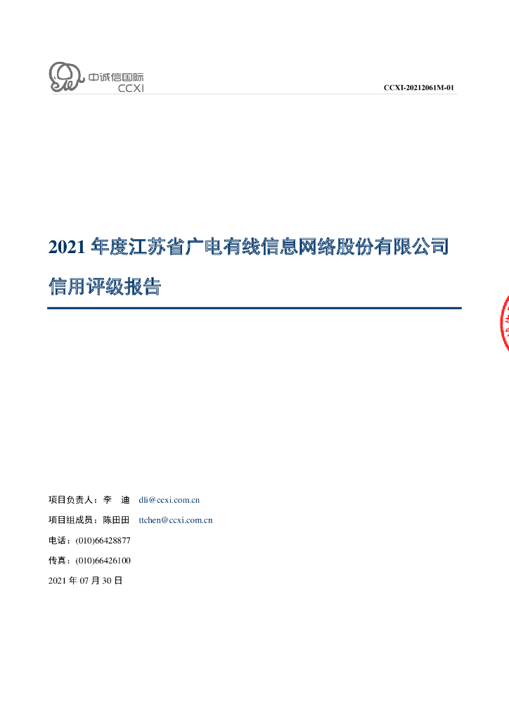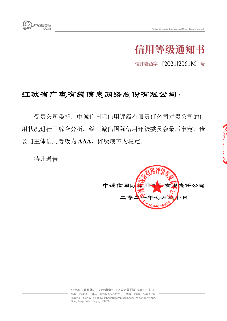 中诚信:江苏省广电有线信息网络股份有限公司主体信用评级报告及跟踪评级安排.pdf
