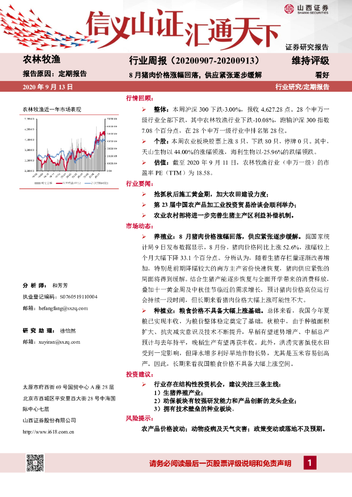山西证券:农林牧渔行业周报:8月猪肉价格涨幅回落,供应紧张逐步缓解.pdf