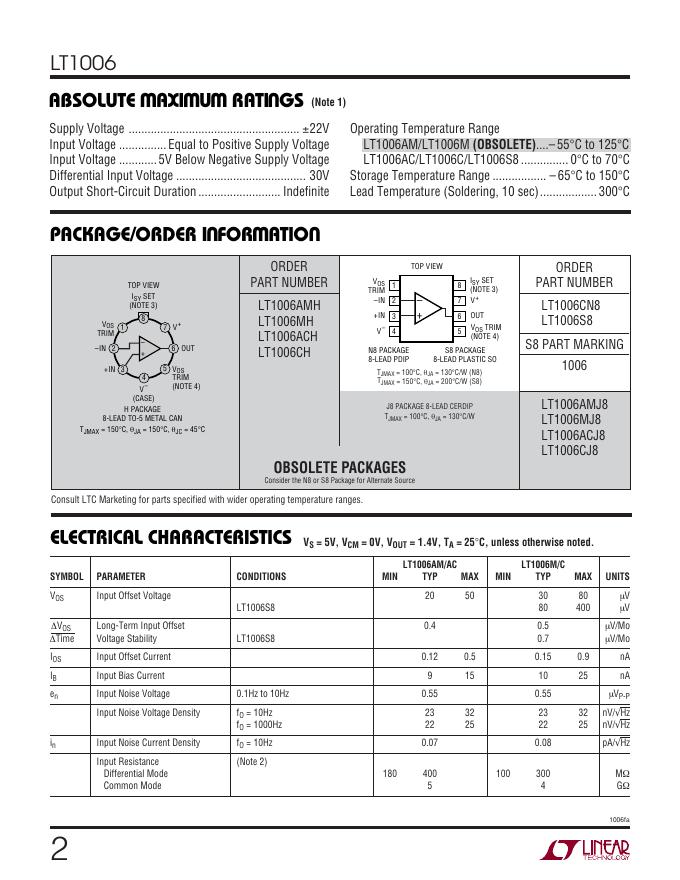LINEAR TECHNOLOGY LT1006 数据手册.pdf