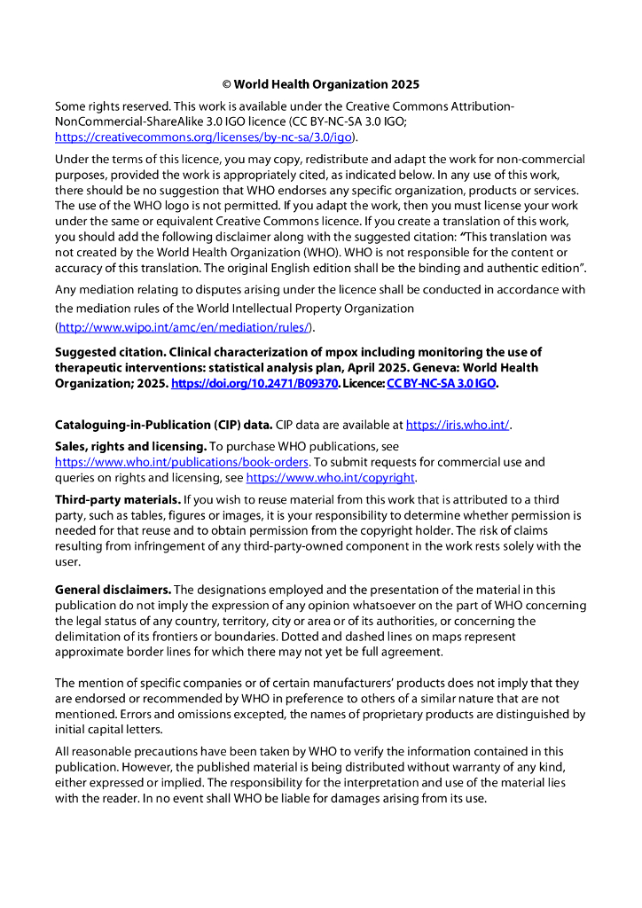 WHO世界卫生组织:2025年临床特征描述包括监测治疗干预措施的使用:统计分析计划报告(英文版).pdf