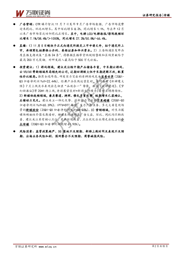 万联证券:互联网传媒行业周观点:11月首批下发78个国产游戏版号,博纳影业首发过会.pdf