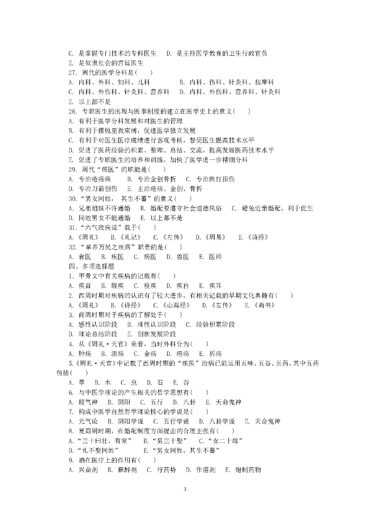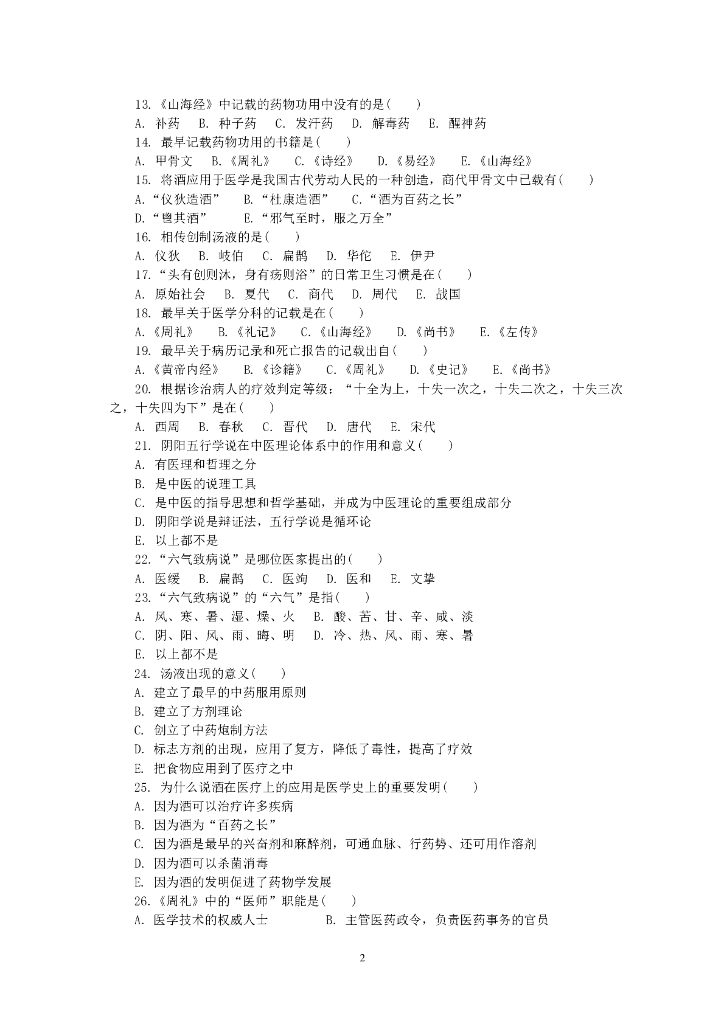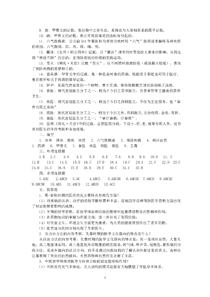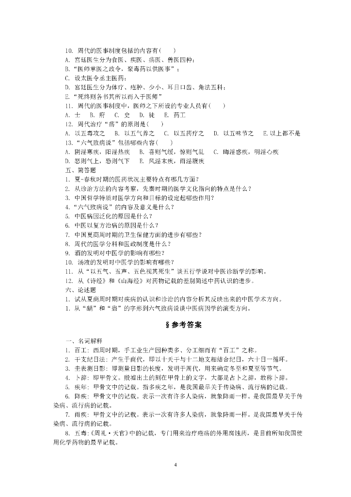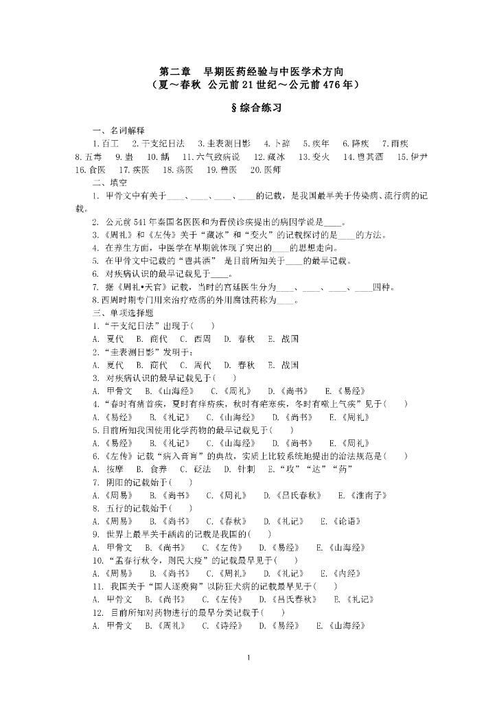 《中国医学史》第二章 早期医药经验与中医学术方向 综合练习.pdf