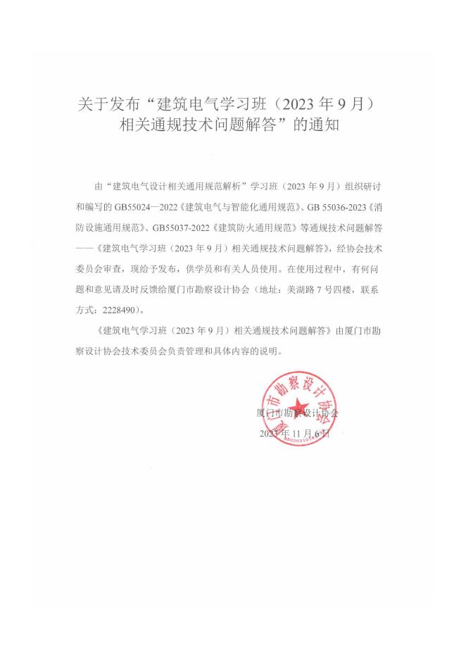 厦门市勘察设计协会:建筑电气学习班(2023年9月)相关通规技术问题解答.pdf