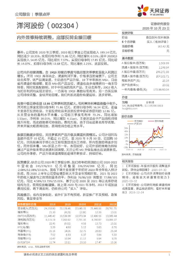 天风证券:洋河股份(002304)-内外兼修持续调整,底部反转业绩回暖.pdf